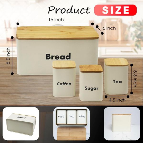 Bread Box for Kitchen Countertop with 3 Coffee Tea Sugar Canisters Metal 4-Piece Bread Box Set with Bamboo Cutting Board Lid$10.5