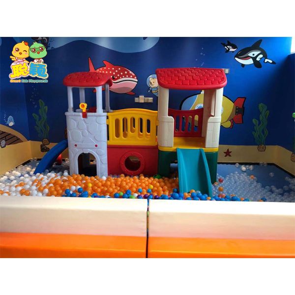 Children's Indoor Playground Equipment Small Wooden Plastic Castle with Software Slide Ocean Ball Pool Naughty Castle Design$105