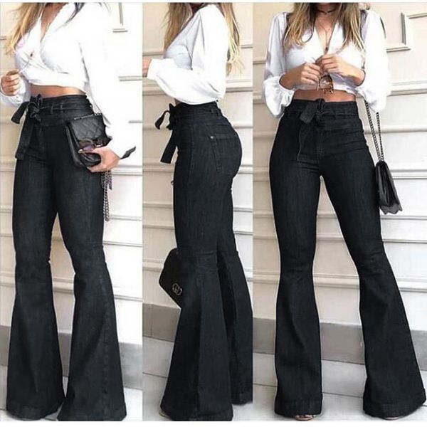 2024 Custom High Waist Micro Elastic Lace-up Pantalones Vaqueros De Mujer Bow Jeans Flared Wide Leg Jeans Women's Flared Jeans$5.3