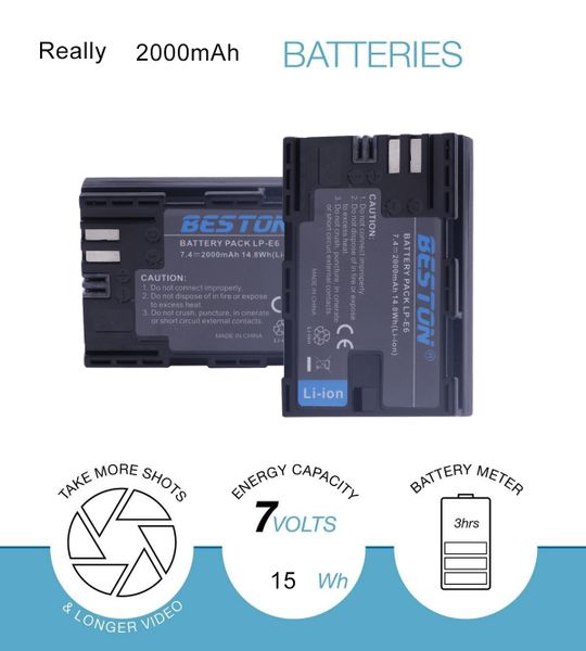 Beston 7.4V 2000mAh Replacement LP-E6 LP-E6N Lithium Ion Battery Pack Rechargeable for EOS Digital Camera$4.33