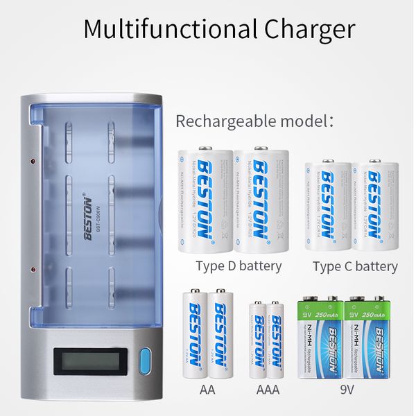 Beston Smart Battery Charger Rechargeable Ni-MH Ni-CD 9V AA AAA C D with Discharge Function and LCD Display$6.9