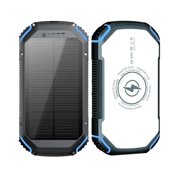 Waterproof Outdoor Solar Power Bank 20000mAh Dual USB Travel Portable Solar Mobile Phone Charger Solar Powerbanks Wireless Power$6.89