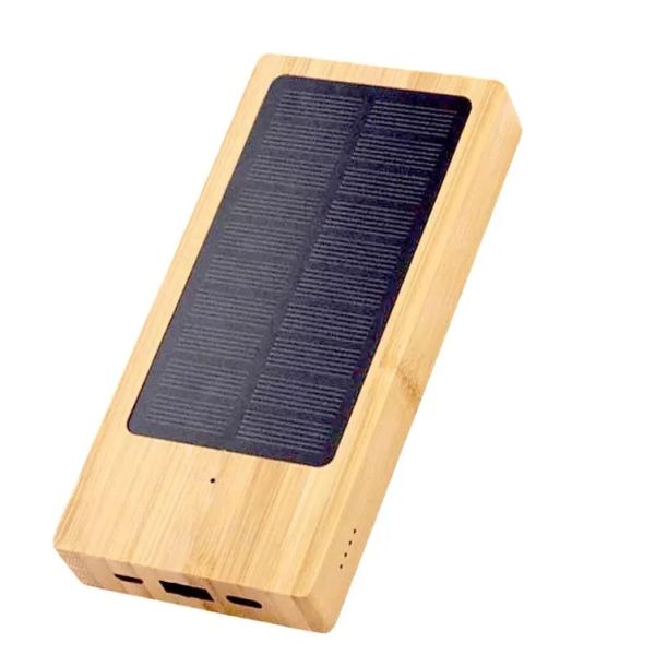 Customize Creative Gift Power Bank Bamboo Material Eco-friendly Portable Solar Charger Type-C 10000mAh Solar Power Bank$5.99