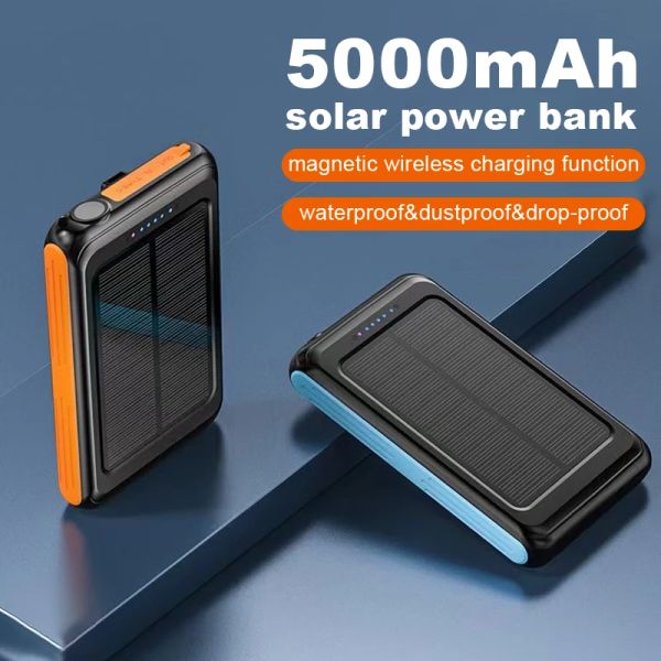Top Sell New Style Ipx6 Waterproof 5000mah Magnetic Wireless Solar Charging Power Bank for Cell Portable Solar Power Bank$7.85