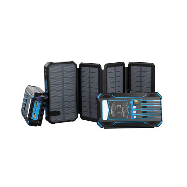 30000mAh Solar Power Bank Waterproof Power Station with Built-in Cables for Cell Phones 20000mAh Solar Charger$14.45