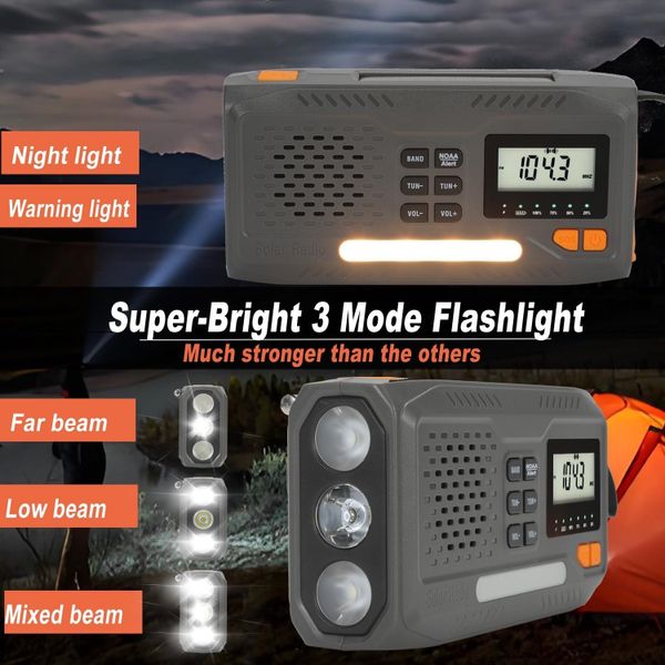 Portable 2000mah Emergency Weather Radio, Solar Hand Crank Noodradio Power Bank, Usb Phone Charger with Flashlight for Outdoor$5.99