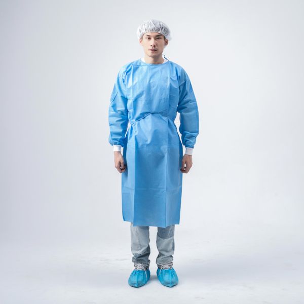 Xiantao Jiamei Factory Wholesale White Blue Disposable Level 1 50g Sms Ppe Isolation Gown with Single Use$0.14