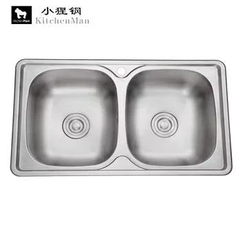 Best Fashion Square Super Deep Handmade Double Bowl Kitchen Sink High Quality Counter Strainer One Counter SS304 Stainless Steel$71