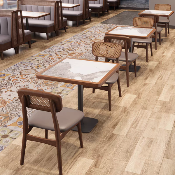 Solid Wood Restaurant Table with Black Metal Base for Restaurant Furniture$120