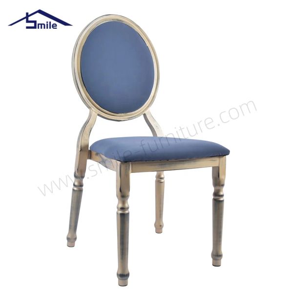 Factory Luxury Customized Blue Leather Hotel Restaurant Furniture Stackable Gold Metal Wedding Dining Hall Banquet Event Chairs$19