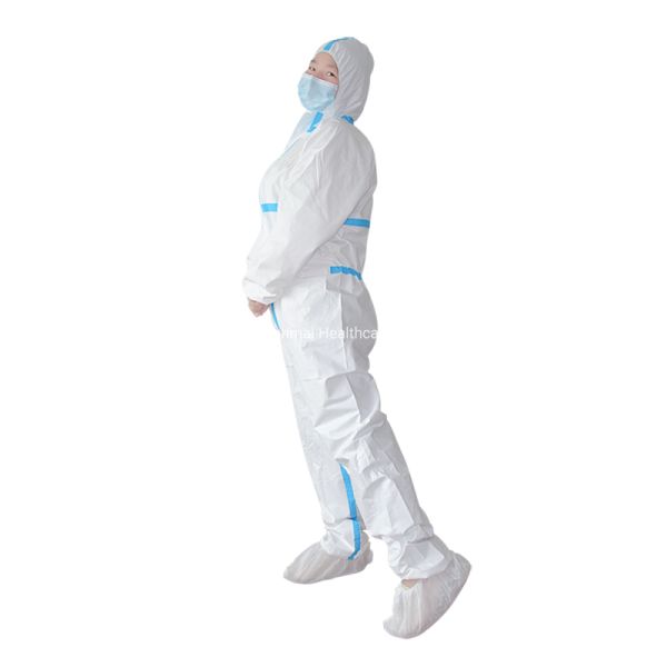 Anti Acid and Alkali Adhesive Taped Hazmat Suit PPE Suit Coverall Disposable Ppe Coverall Protective Surgical Gown$0.69