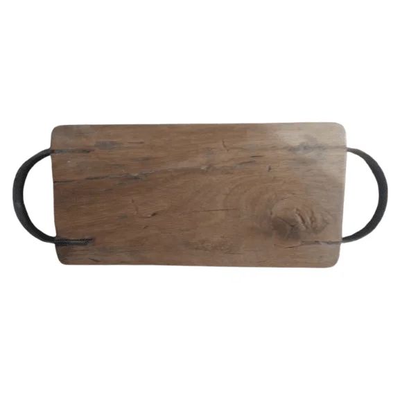 Rustic Farmhouse Style Wooden Chopping Board with Iron Handle Sustainable Hardwood Unique Kitchen Decor$3