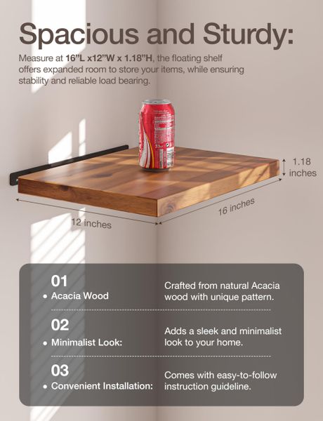 Hot Acacia Deep Floating Shelves Wooden Floating Shelves for Wall Floating Book Shelves Corner Floating Shelf for Bedroom$9.88