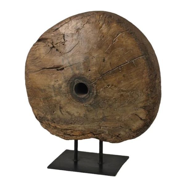 Handmade Vintage Round Stone Wheel Table Rustic Interior Home Decor for Restaurant Hotel & Everyday Use Art Product$12
