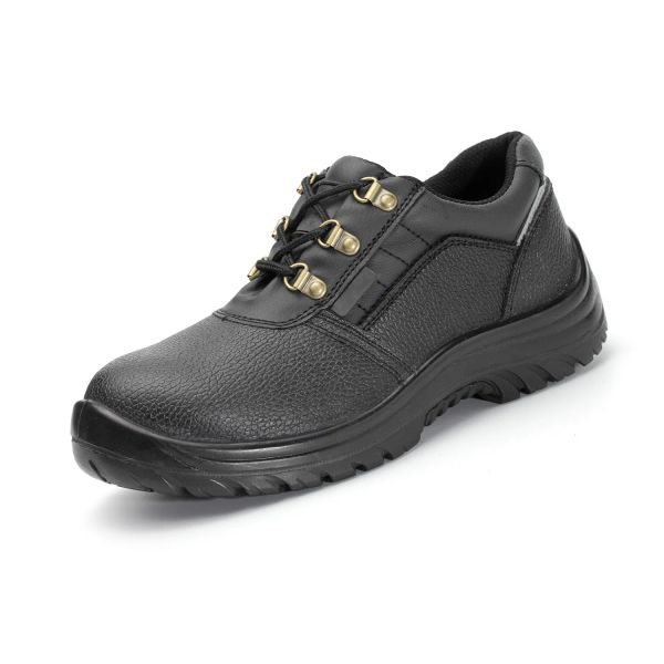 Men's Low Cut EN Standard Work Safety Shoes Embossed Leather with Plastic Toe Anti-Smash & Anti-Slip for Factory Use$10