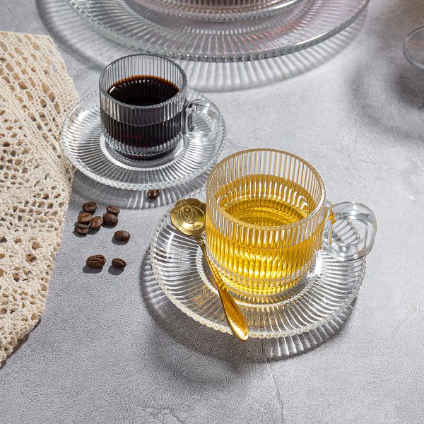 New Drinking Glass Mug and Saucer Set in Stock 150ml Tea Glass Cup Engraved Design glassware Set Bulk Sale Cheap Price Tea Mug$5.2