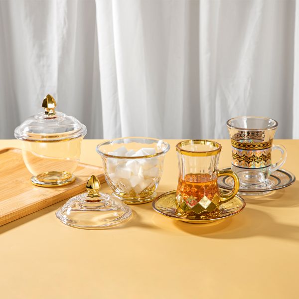 JNGHUANG GLASSWARE New Designs Middle East Style Turish Glass Tea Cup and Saucer Sets with Engraved and Gift Boxes$0.25