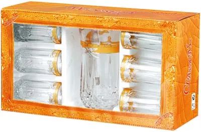 JINGHUANG OEM/ODM Glassware European Middle East 7 Pcs Set 1500ml Coffee Tea Glass Golden WaterJug with Box for Promotional Gift$3.4