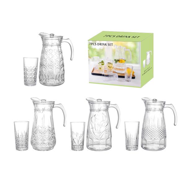 JINGHUANGOEM/ODM Glassware Vertical Pattern Cold Drinkware Pitcher Drinking Water Jug Set Glass Cup Set for Coffee Juice Tea Pot$2.86