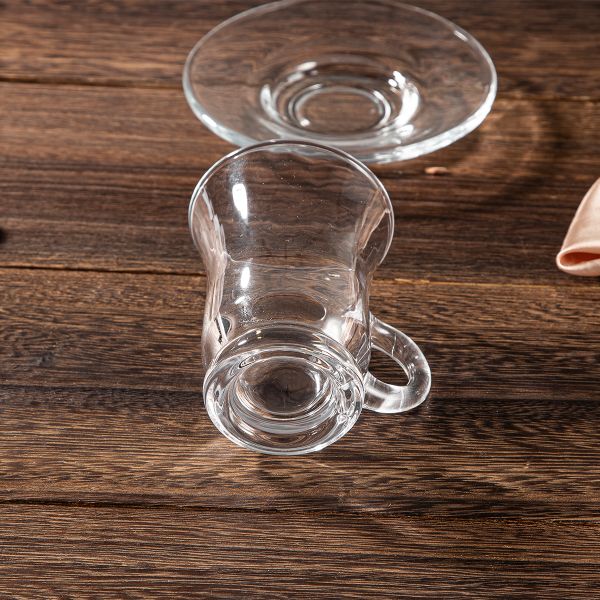 Newest Clear Glassware Tea Cup With Handle Set Custom Restaurant Home Coffee Cup With Saucer for Supermarket Promotional Gifts$0.22