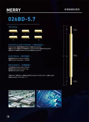 Shenzhen Merry Precise Electronic Co., Ltd. is a professional manufacturer based in Shenzhen, China, specializing in the design, development, and production of high-precision test probes and connectors. Established in 2010, the company operates a dedicated factory equipped with advanced precision machine tools and testing equipment imported from Switzerland and Japan. With a workforce of approximately 100 employees and a monthly production capacity of 2 million units, the company serves as a key supplier for the semiconductor, PCB, and ICT industries. Their extensive product portfolio includes semiconductor test probes, ICT and FCT testing probes, spring test probes, Pogo Pin connectors, high-frequency RF probes, and semiconductor packaging testing probes. Additionally, the company provides customized probe solutions, jig consumables, and PCB transplant processing services. Their manufacturing capabilities are supported by an in-house R&D team and experienced technicians with up to 20 years of industry expertise, focusing on high-density probe technology and precision engineering. Shenzhen Merry Precise Electronic Co., Ltd. operates with a strong emphasis on quality control and innovation, holding over 30 patents and a national trademark registration. As an export-oriented manufacturer, they offer OEM and ODM services to a global clientele, including major international brands such as Samsung Electronics. Their products are widely utilized across diverse sectors, including electronics manufacturing, medical equipment, automotive electrical systems, and industrial machinery.