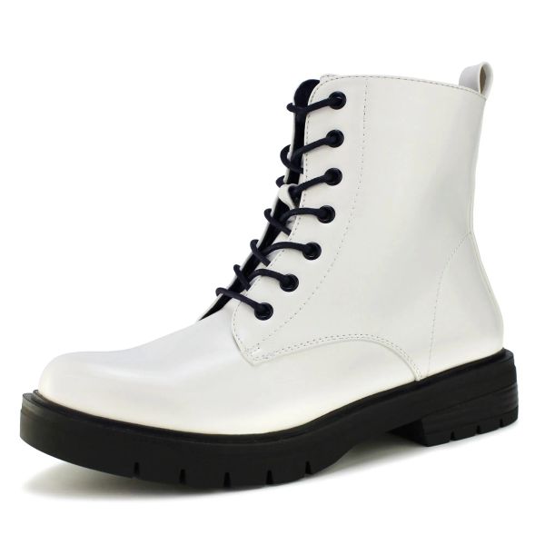 Women′ S Combat Boots PU Leather Black Boots Ankle Boots for Women Casual Daily Lace up Work Boots Shoes$9