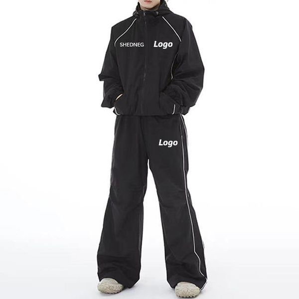 Qiuting Design Sense Splicing Scimitar Line Men's Sports Hoodie Set Standing Collar Short Coat Wide Leg Casual Pants Set$30.16