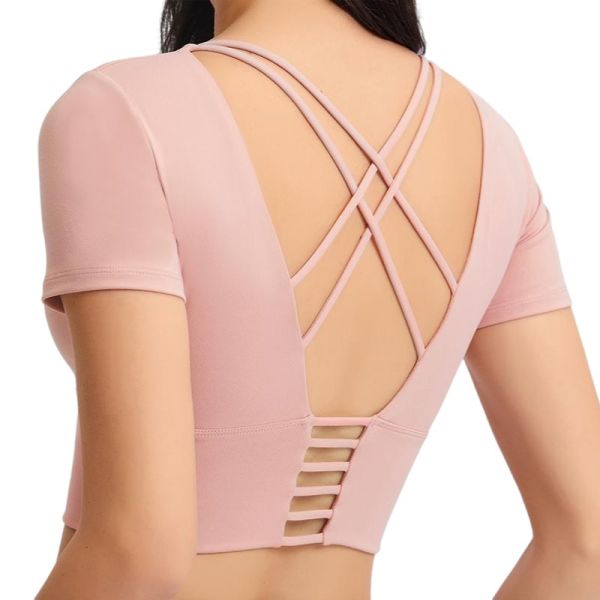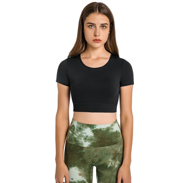 Crop Tops Women Yoga T-Shirts Solid Sports Top Short Sleeve Running Shirts Sexy Exposed Back Vent Quick Dry Fitness Gym Sport Wear$8.8