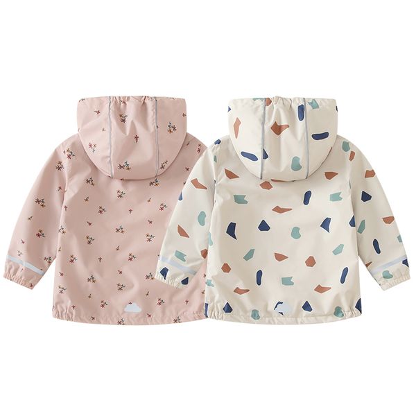 Spring Fleece Children's Jacket, Girls' Hooded Jacket, Cute Printed Raincoat, Zipper Closure, Children's Waterproof Jacket$17