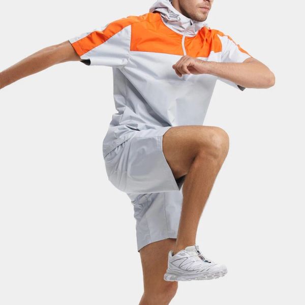 Hot Sale Workout Gym Half Zip Suit Soft Lightweight 100% Polyester Short Sleeves Jackets Shorts Set Mens Sports Tracksuit$25.8