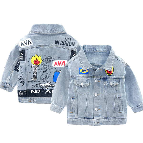 OEM Customization Top Class Boys Denim Jacket Fashion Printing Children Cool Jean Jackets for Toddler Kids$12