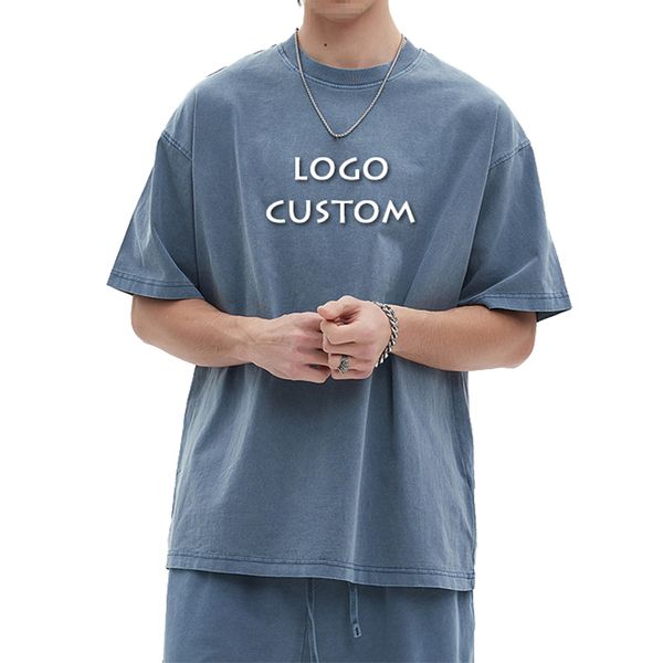 Street Fashion Heavy Short Sleeved Men's T Shirt New Cotton Loose Sport Washed T Shirt Men$3.98