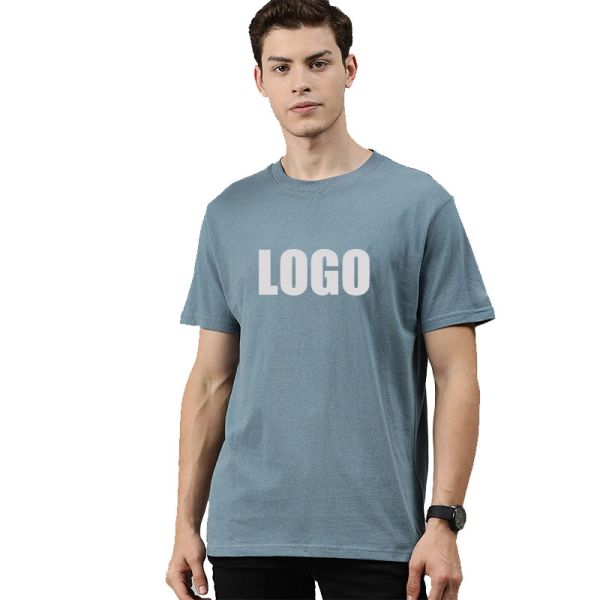 Men's Grey Organic Tee Shirt with High Quality Printed$5