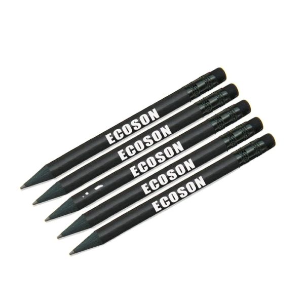 Custom Imprinted Logo Branded Round Barrel Painted HB Lead Mini Golf Pencils Bulk Mini Matte All Black Wood Pencil with Rubber$0.03