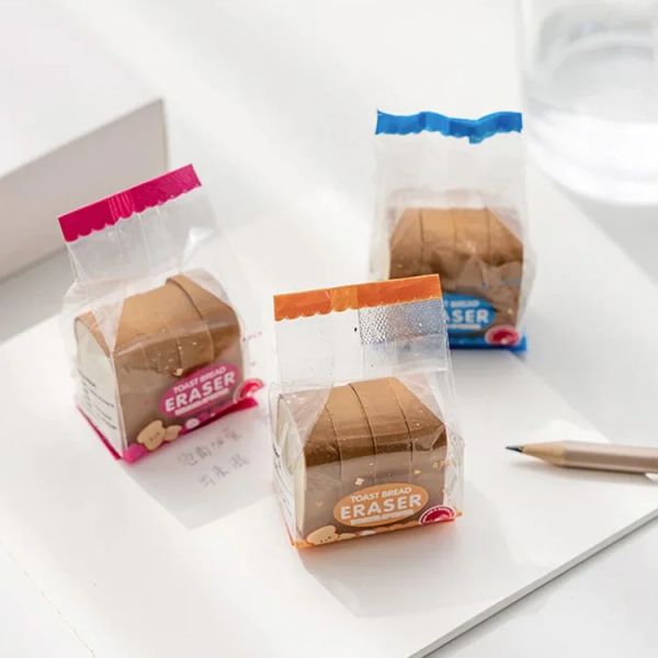 Hot Sales Artculos Escolares TPR Eraser Toast Bread Shaped Borradores Stationery Supplies Custom Cute Erasers in Bulk$0.33
