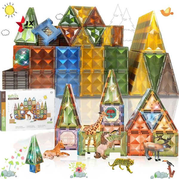 Trending Items 2025 3D Puzzle 85 Pcs Magnet Building Animals Magic Block STEM Forest Diamond 5.5CM Magnetic Tiles for Kids$12.3