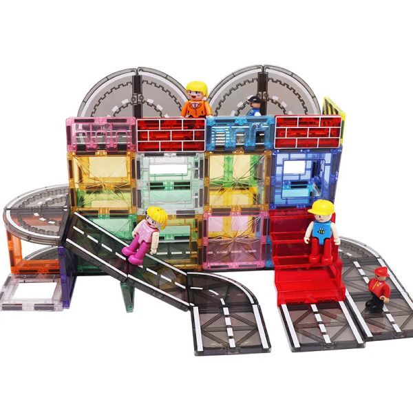 Customize 48pcs STEM Urban Traffic Toys 3D Road Magnetic Tiles Building Colorful Block Bricks Toy$8.2