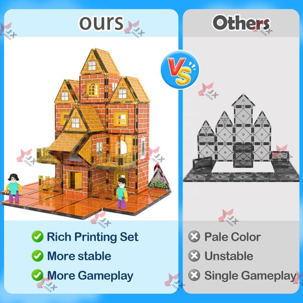 Trending Items 2025 3D 113pcs Construction Magnet Building Magic Block Toys STEM Doll House Giant Magnetic Tiles for Kids$17.5