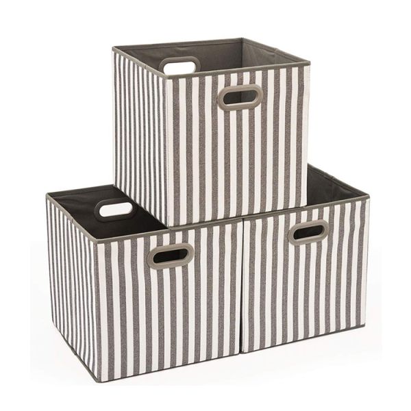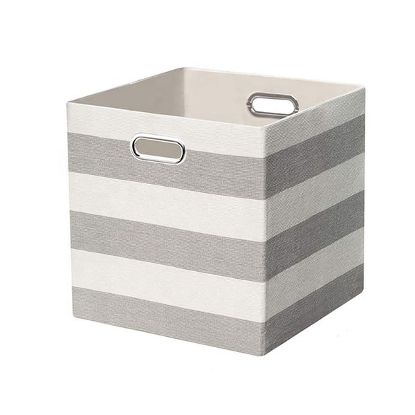 Home Closets Foldable Containers Drawers Fabric Stripe Pattern Storage Cube with Plastic Handle$1.5