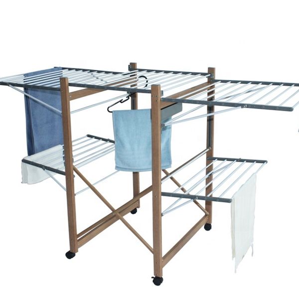 Hot Wholesale Standing Dryer Rack Wood Color Foldable Drying Rack with Wheels Clothes Horse Lingerie Drying Rack$20.8