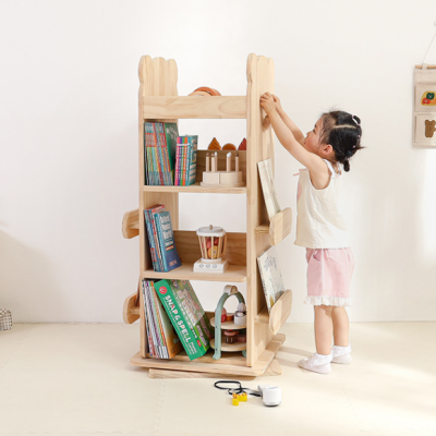 Solid Wood 360 Degree Rotating Bookshelf Children's Picture Book Rack Floor Mounted Movable Storage Rack Multi Layer Corner Bookcase for Home Use - 58*40.5*115cm