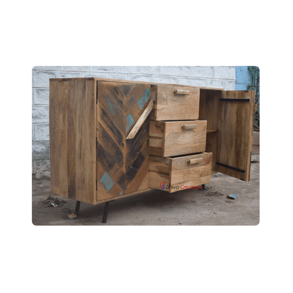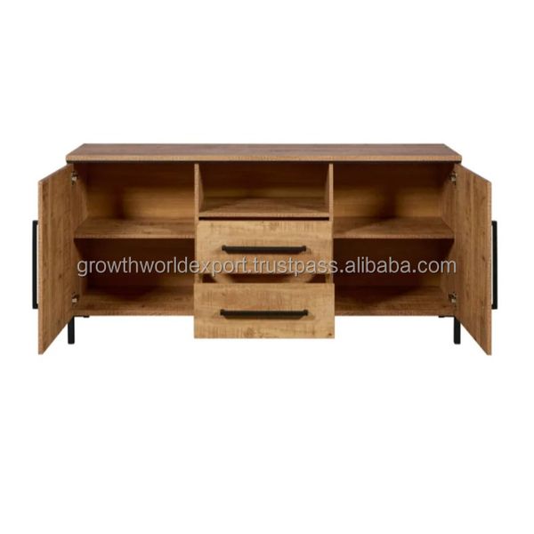 Wooden Handmade Side Board With 2 Drawer & 2 Door & iron leg for Living room Furniture Modern Storage Bedroom Furniture 2025 new$211
