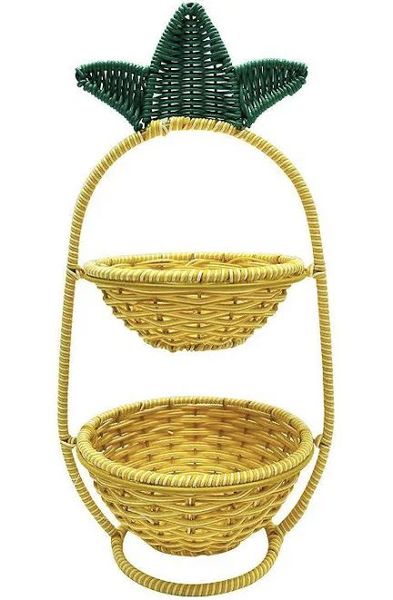 Two level decorative metal fruit basket in antique style crafted for homes with rustic charm and practical storage needs$8