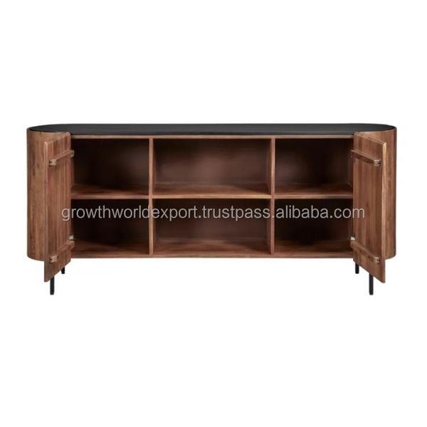 Modern High Quality Wooden Side Board With Drawers & Doors & With Iron Leg Storage Solid Wooden Furniture 2025 Home & Hotel 2025$250