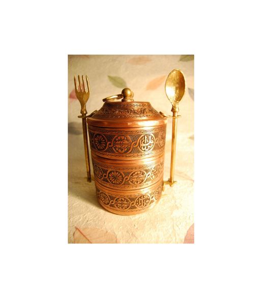 Traditional handmade brass tiffin box for healthy meals storage suitable for daily office or school use$8