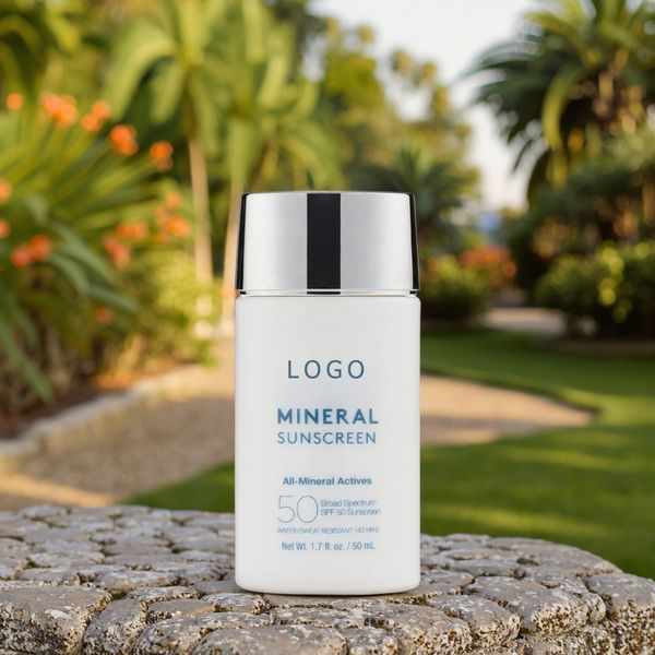 Private Label Organic SPF 50+ Mineral Sunscreen Lotion Water Resistant Herbal Aloe Cream Moisturizer Hydrating Face Tint Zinc$1.13