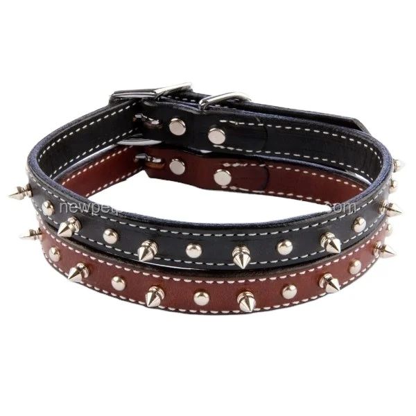 Pet Collars Customized Luxury Leather Studded Spiked Dog Collar Pet Designer Adjustable Accept Customized Brand Logo for Pets$2.5