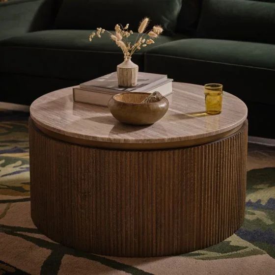Nova Nordic Contemporary Ribbed Oval Coffee Table with Premium Marble Top for Home Living Room Furniture$225