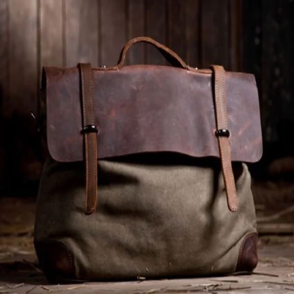 Custom High Quality Canvas and Leather Messenger Bag For Shopping Travelling Men Shoulder Handbags$2.1
