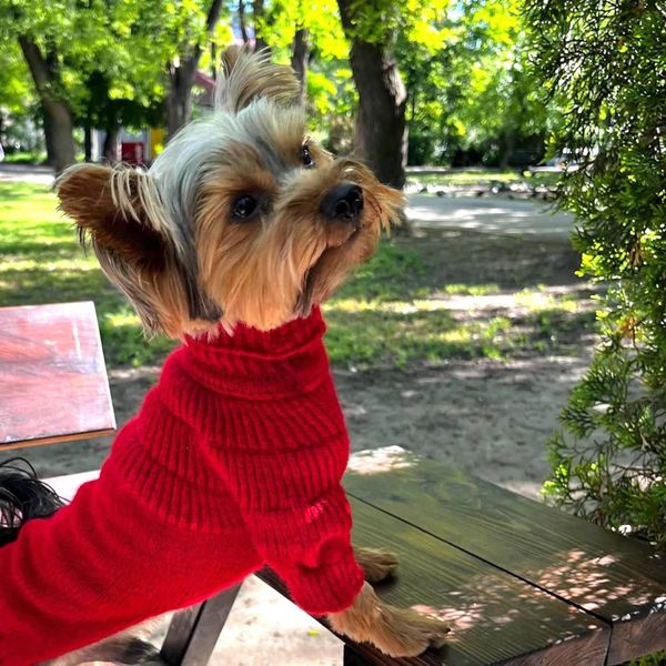 Red Wool Dog Sweater for Small Dogs Winter Halloween Festival Simple Warm Knit Turtleneck Handmade Cozy$3.5